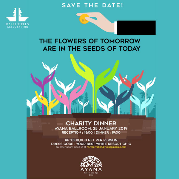 Bali Hotels Association in cooperation with AYANA Resort and Spa, BALI is holding a Charity Dinner which shall be held on January 25th, 2019 at AYANA Resort and Spa, BALI for BHA Scholarship programs.