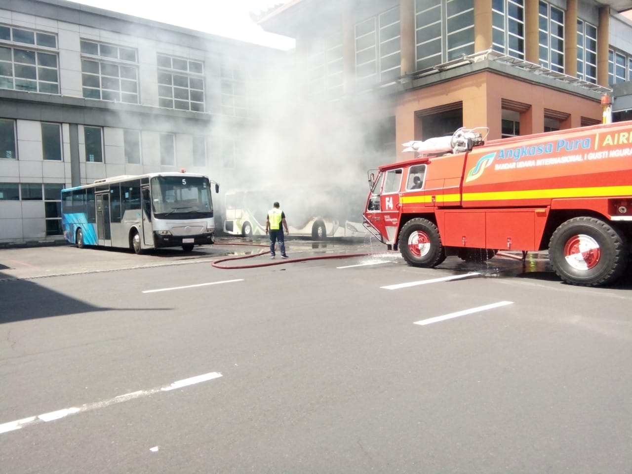 There were reports of a small bus fire in an empty passenger bus that was parked in the terminal.